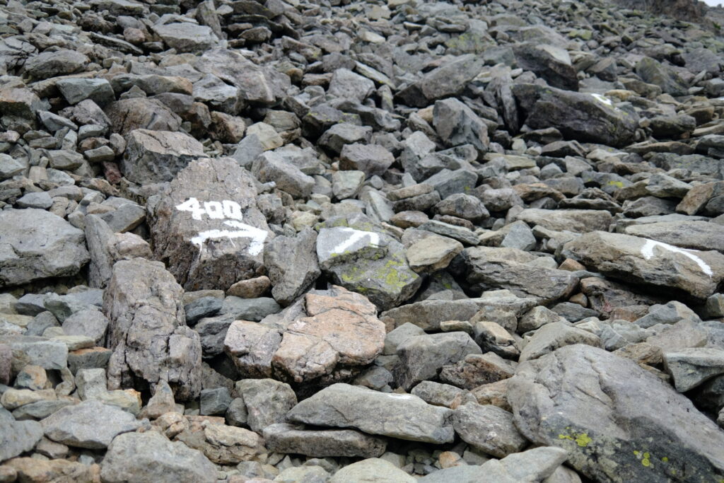 岩だらけ。空気が薄くてキツイ道。