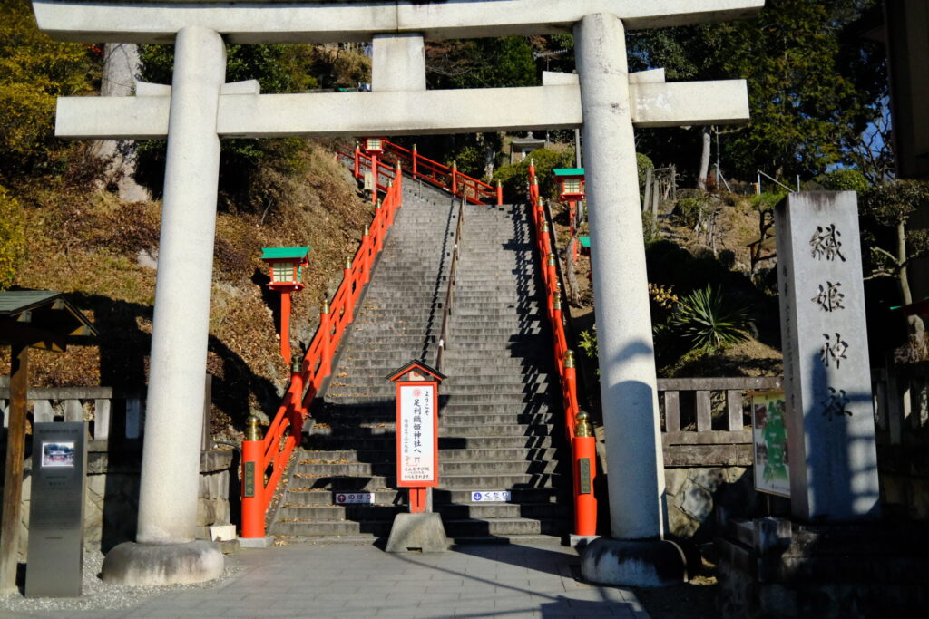 駅から徒歩で登山口へ。「織姫神社」までの優雅なアプローチ