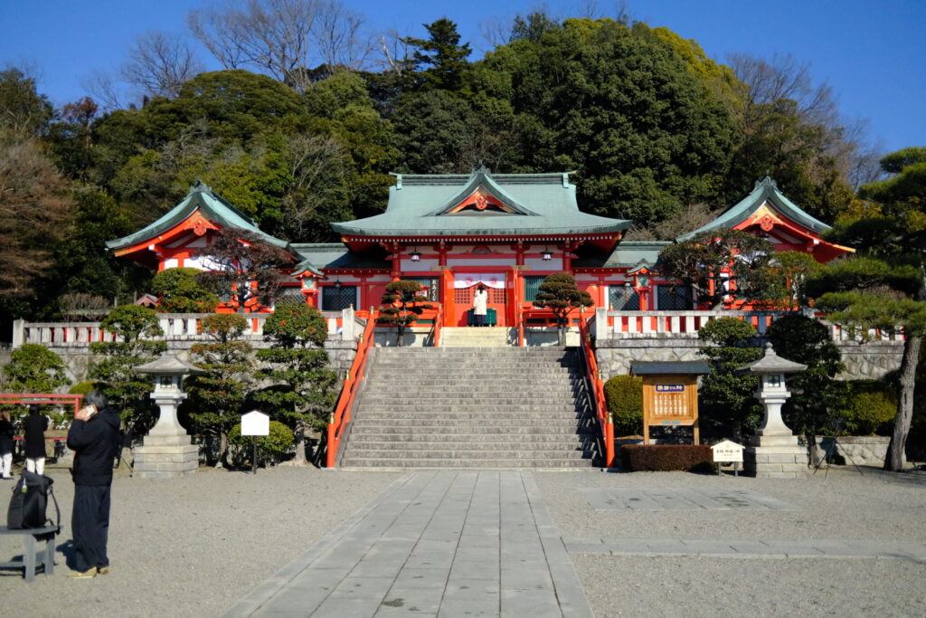「よし、まずは参拝だ」と意気込みますが、本殿にたどり着くには、この立派な階段を登らなければなりません。