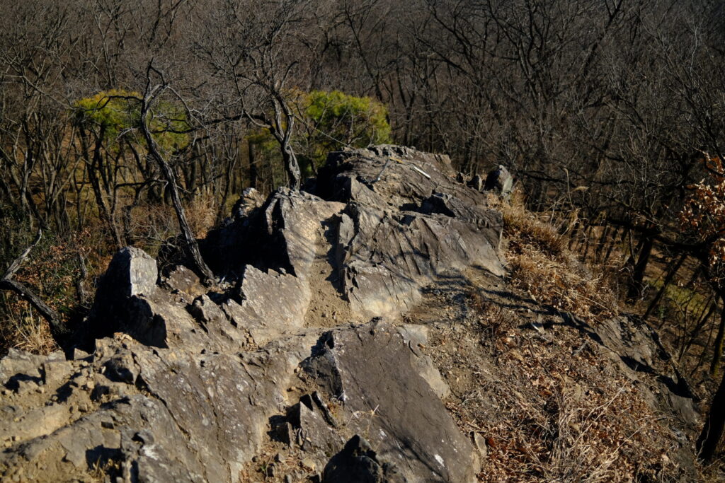 なだらかな土の道は終わりを告げ、現れたのは荒々しい岩の稜線。