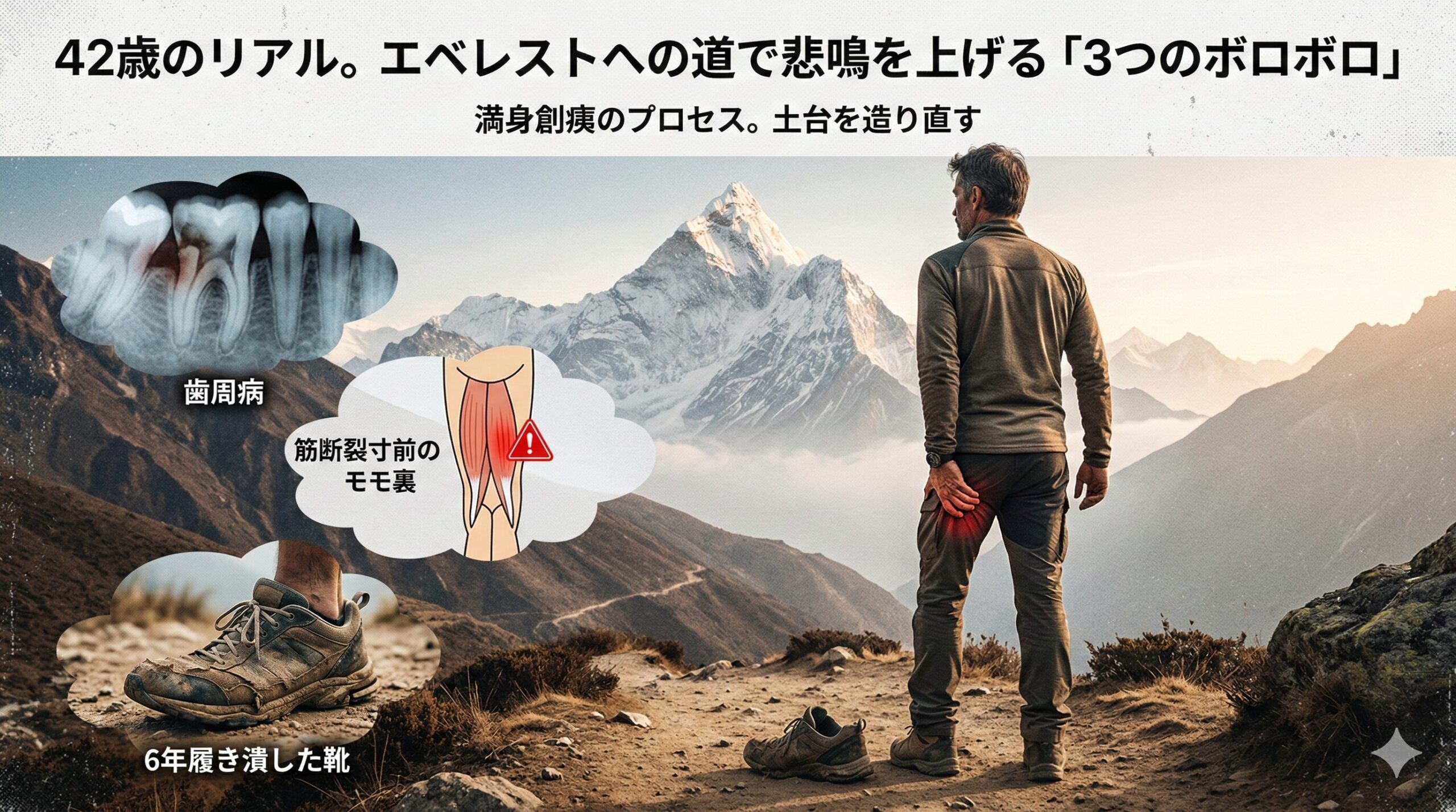 身体づくりの基本であり、エネルギー摂取の要となる「歯」に、これほどの爆弾を抱えていたとは……。42歳、エベレストへの道のりは、自身の身体の根本的な「土台のメンテナンス」から逃げることを決して許してはくれませんでした。