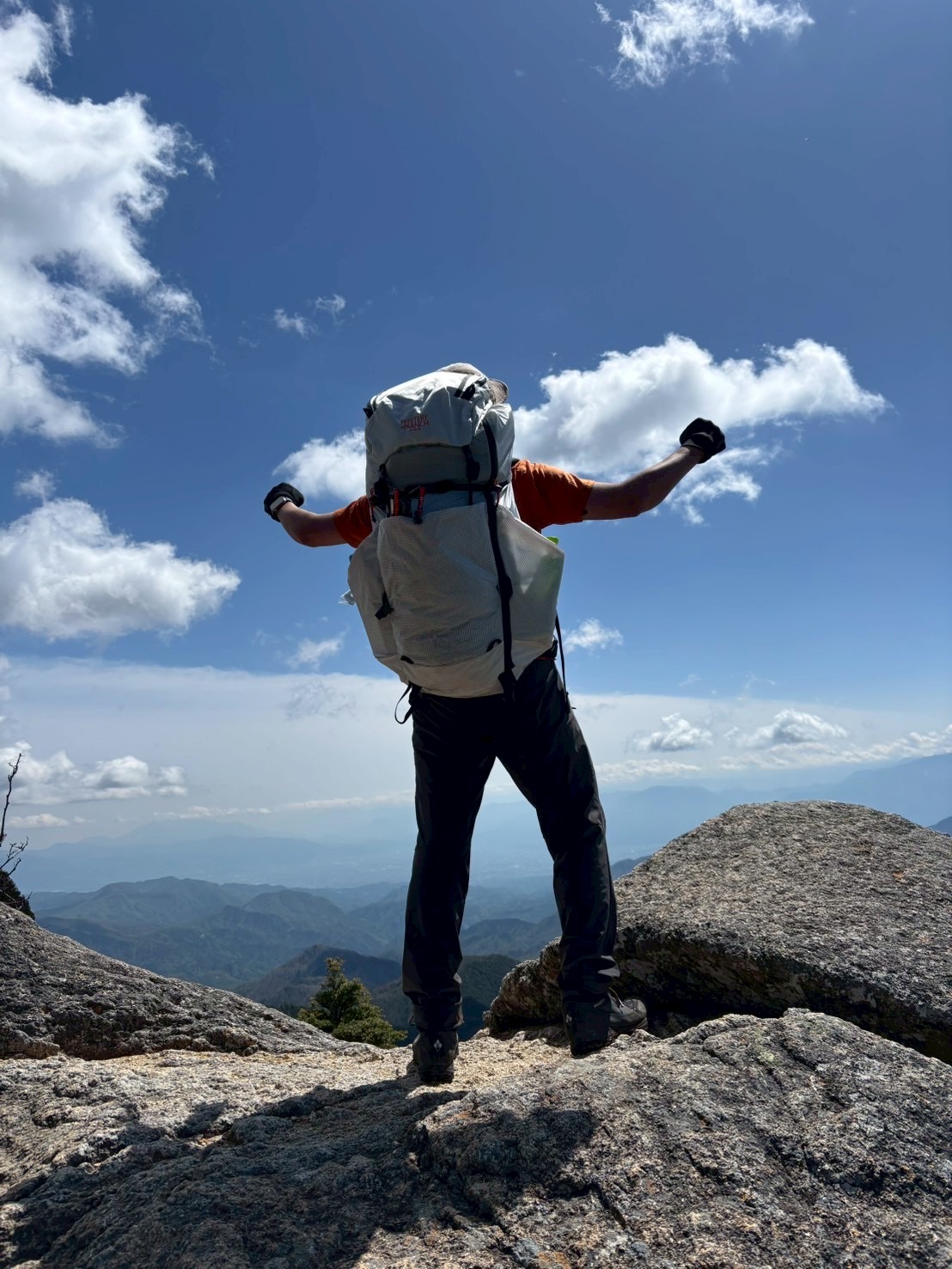 この相棒が全てを背負ってくれたおかげで、私は恐怖に打ち勝ち、念願の槍ヶ岳の頂に立つことができたのです。